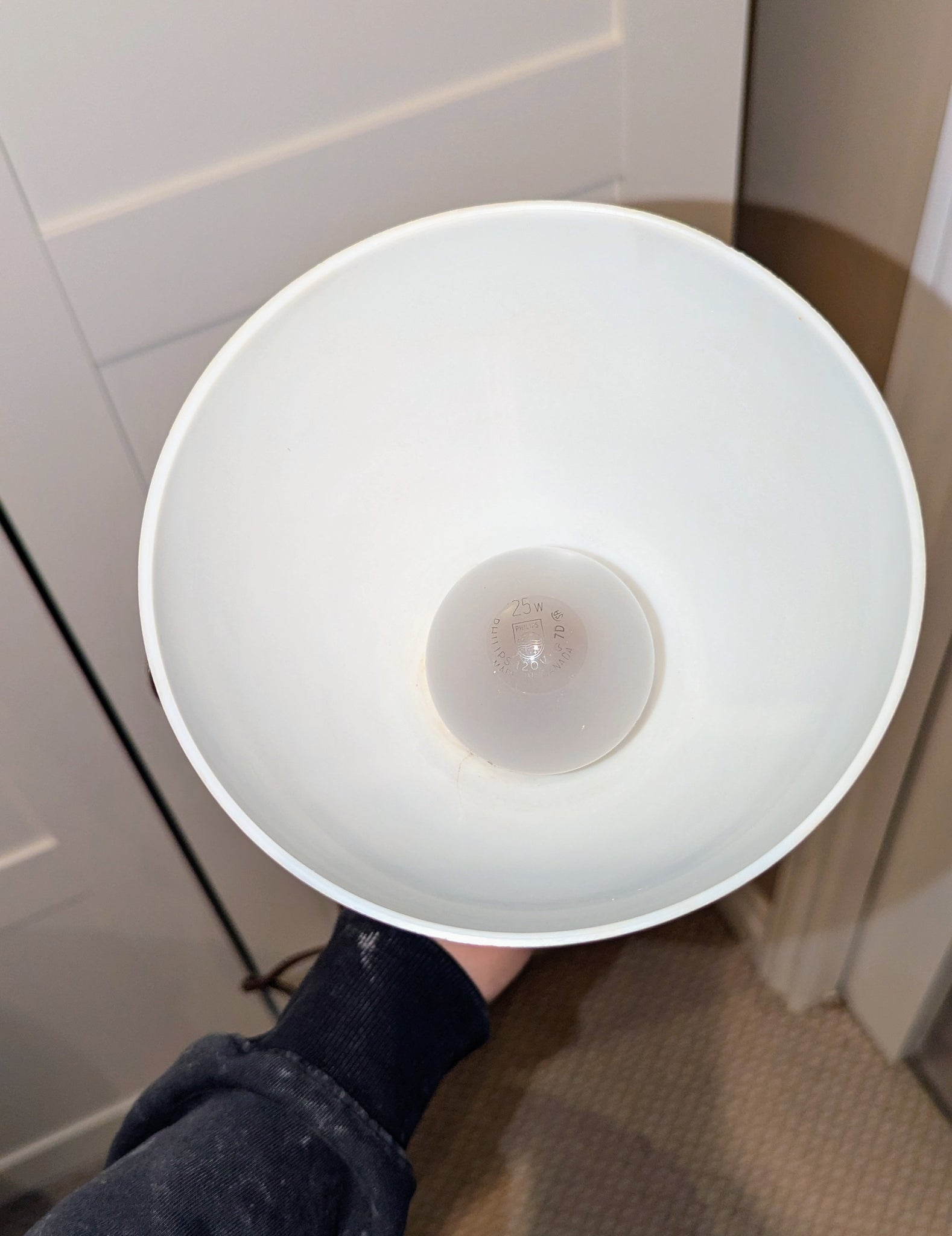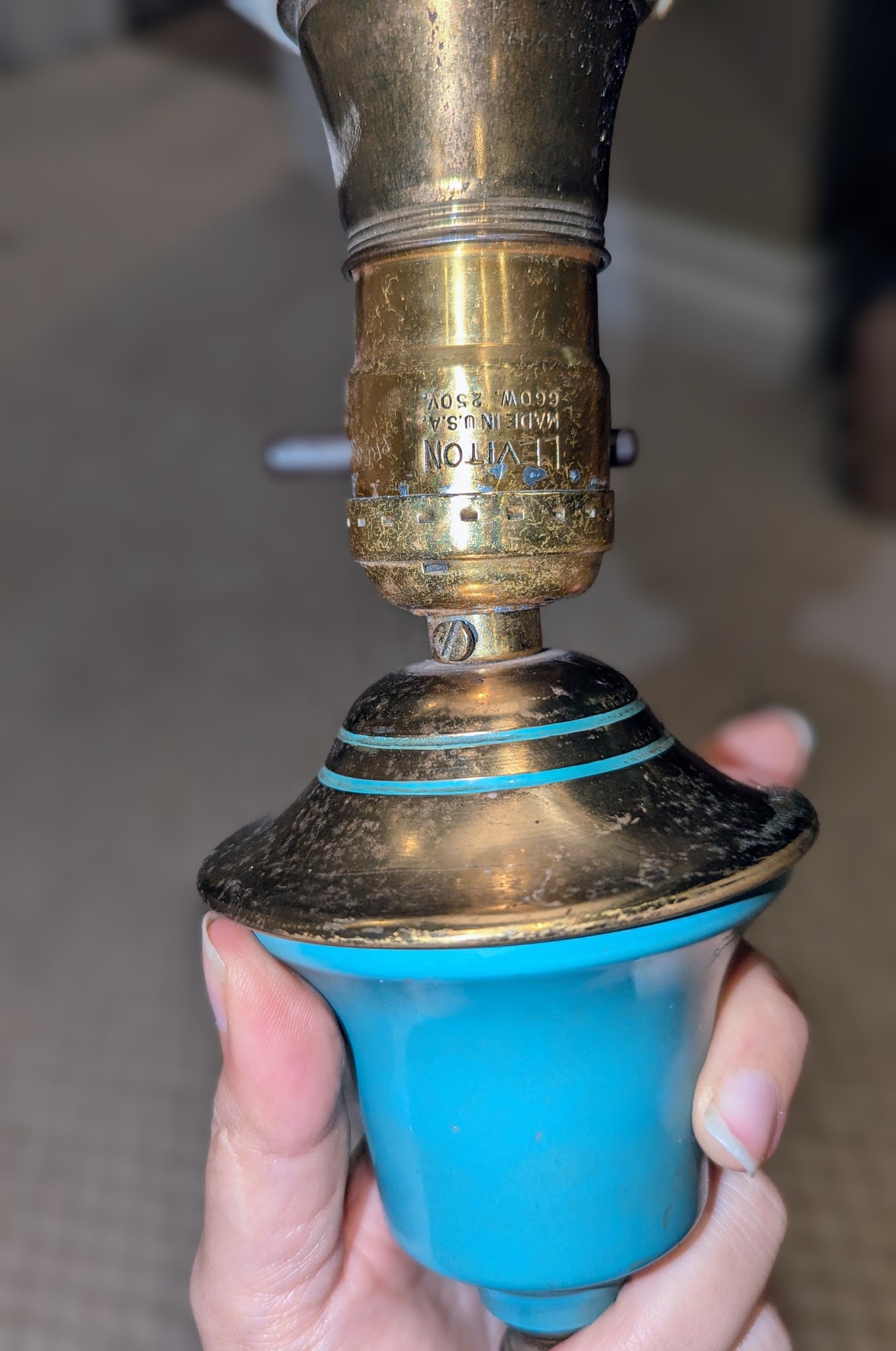 Condition: Good vintage condition. Works as shown. Some patina, mild wear to brass, and one small surface crack on base of shade (stable, not noticeable and does not affect structure).